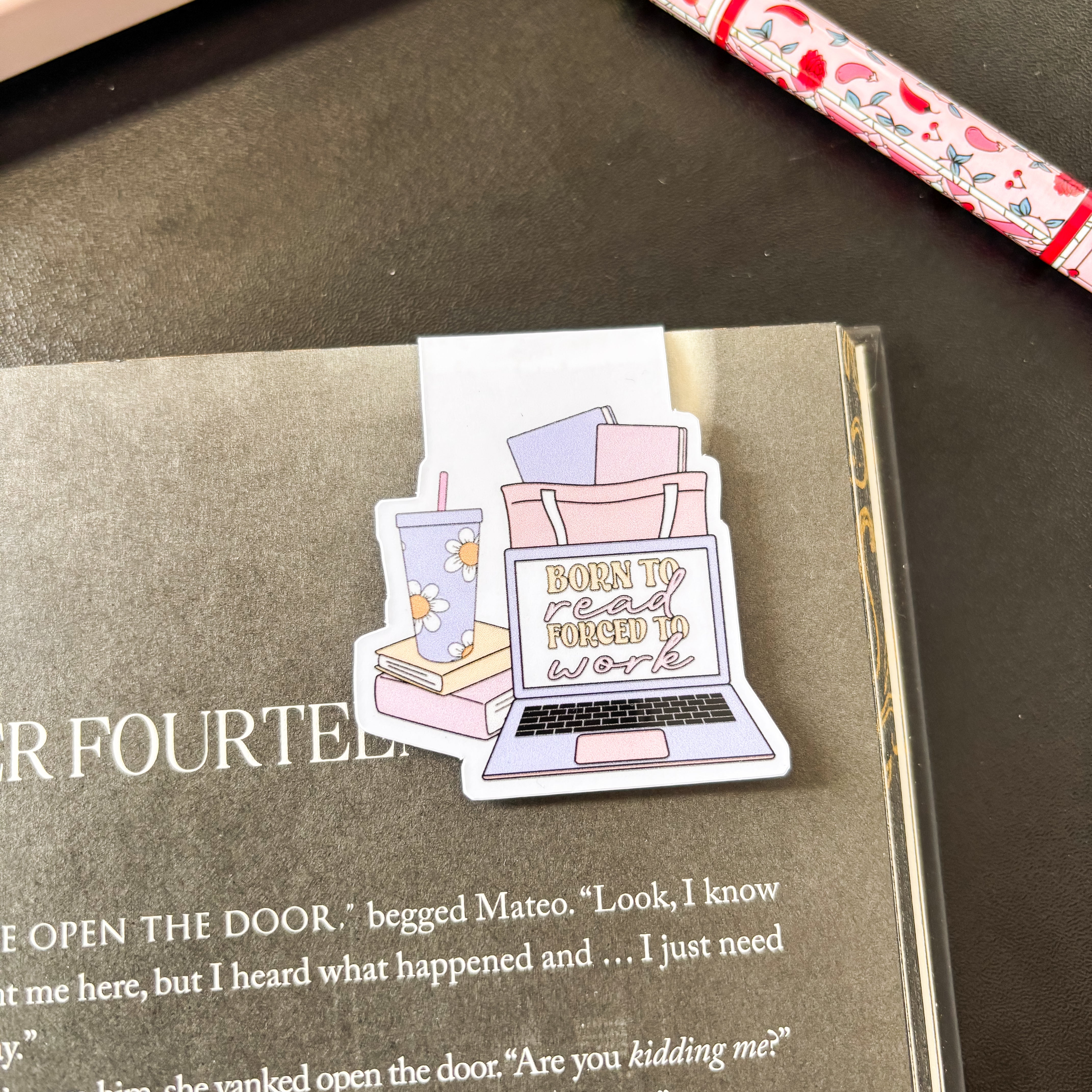 For the readers who’d rather be flipping pages than answering emails, this Born to Read, Forced to Work magnetic bookmark says it all. With its pastel stack of books, laptop, and iced drink design, it perfectly captures that book-lover mood we all know too well.