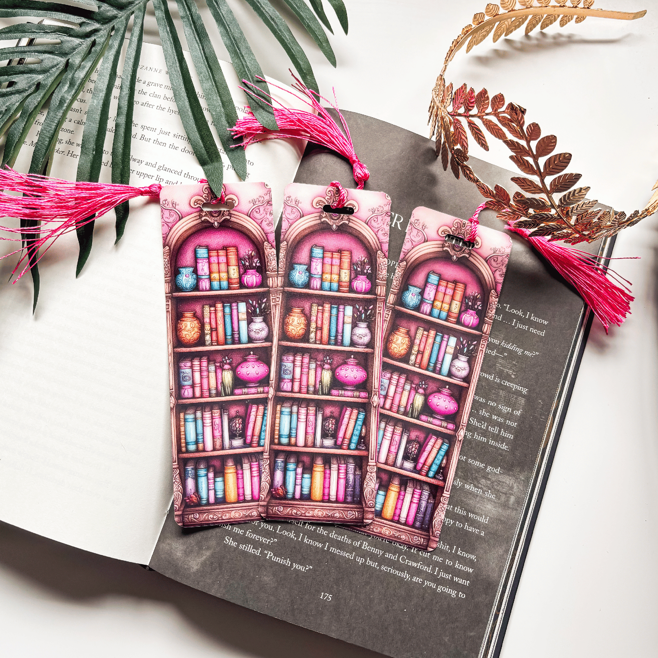 Perfect for slipping into your favorite romance novel or a thrilling fantasy read, the Pretty In Pink Bookshelf Bookmark brings joy to every page turn. Whether you're treating yourself or someone special, this bookmark is the perfect addition to any reader’s toolkit.