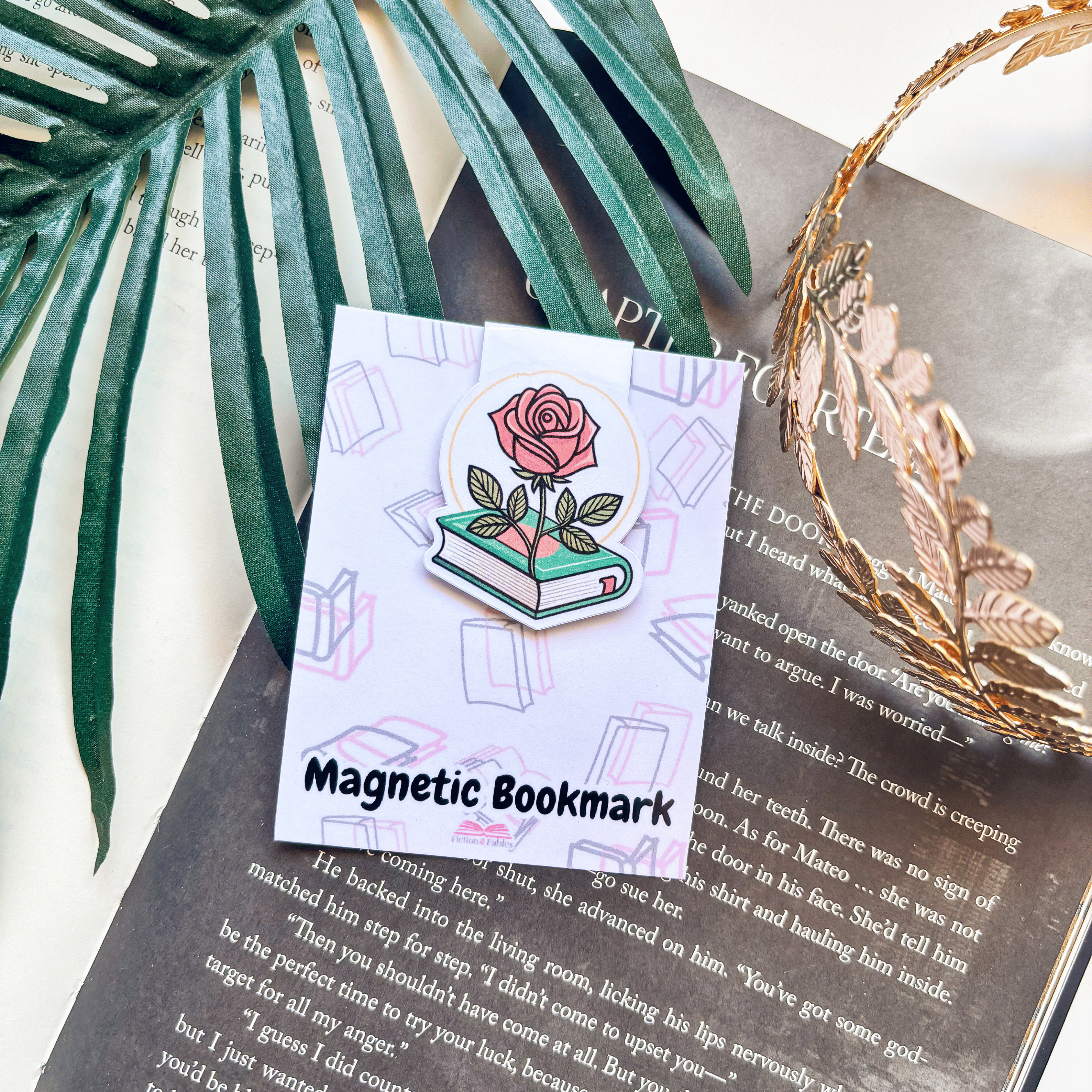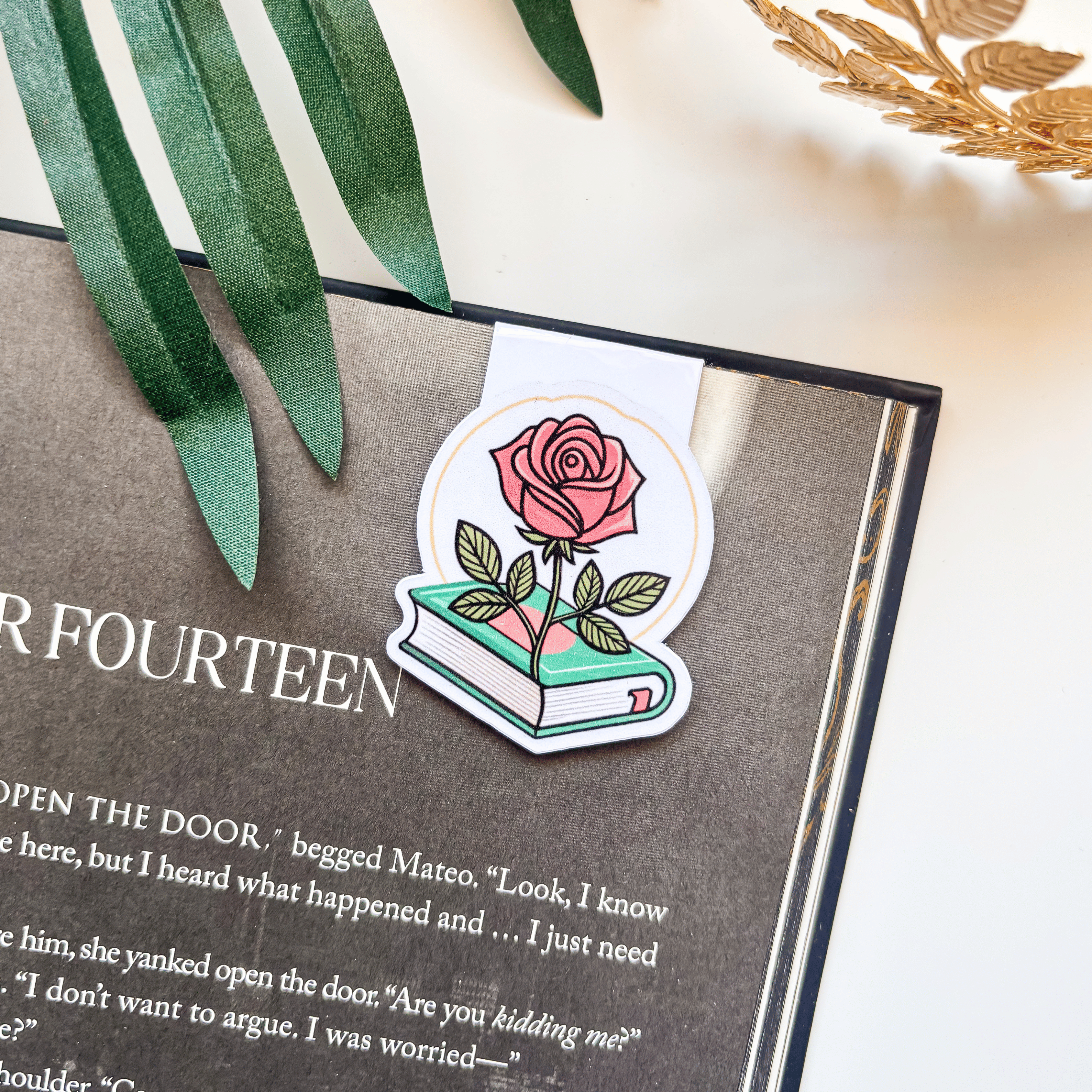 Add a touch of elegance to your reading routine with the Rosey Book Magnetic Bookmark. Featuring a beautifully illustrated book paired with a delicate rose, this bookmark is perfect for book lovers who appreciate timeless designs with a romantic flair.
