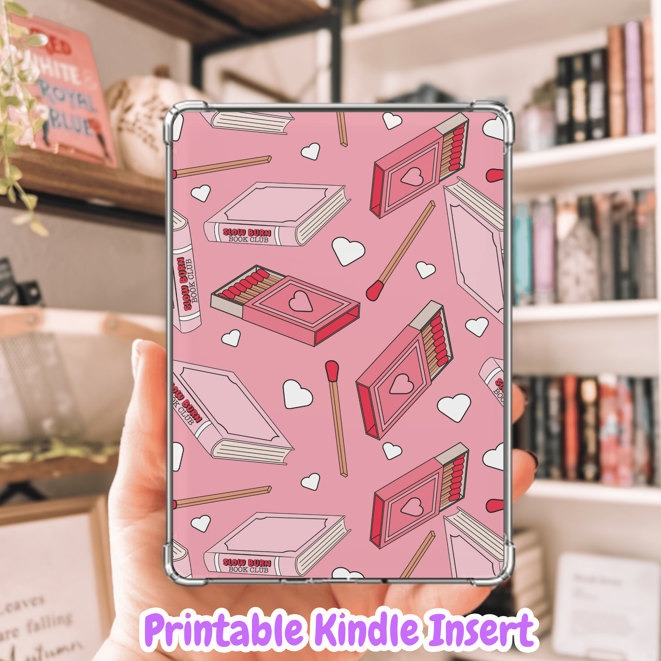 Set the mood for your next slow-burn romance with this atmospheric Slow Burn Kindle Insert. Featuring a pattern of books and burning matches, this design is perfect for readers who love long glances, quiet tension, and the sweet payoff that makes the wait worth it.