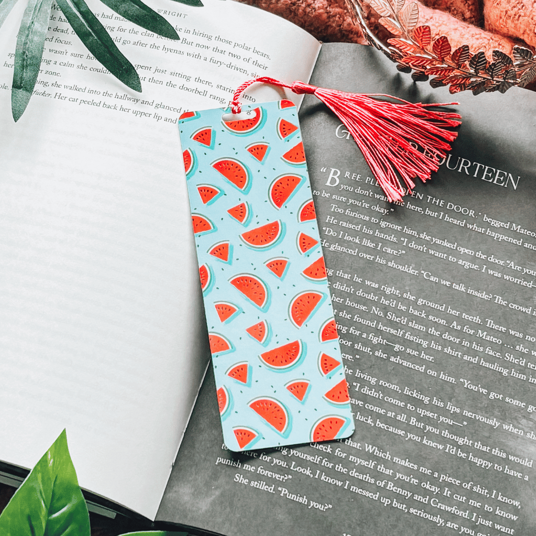 This bookmark measures approximately 5.4 x 15.5cm and has a glossy finish. It is double sided. Slight colour variations may occur. This bookmark is handmade so slight imperfections may occur.